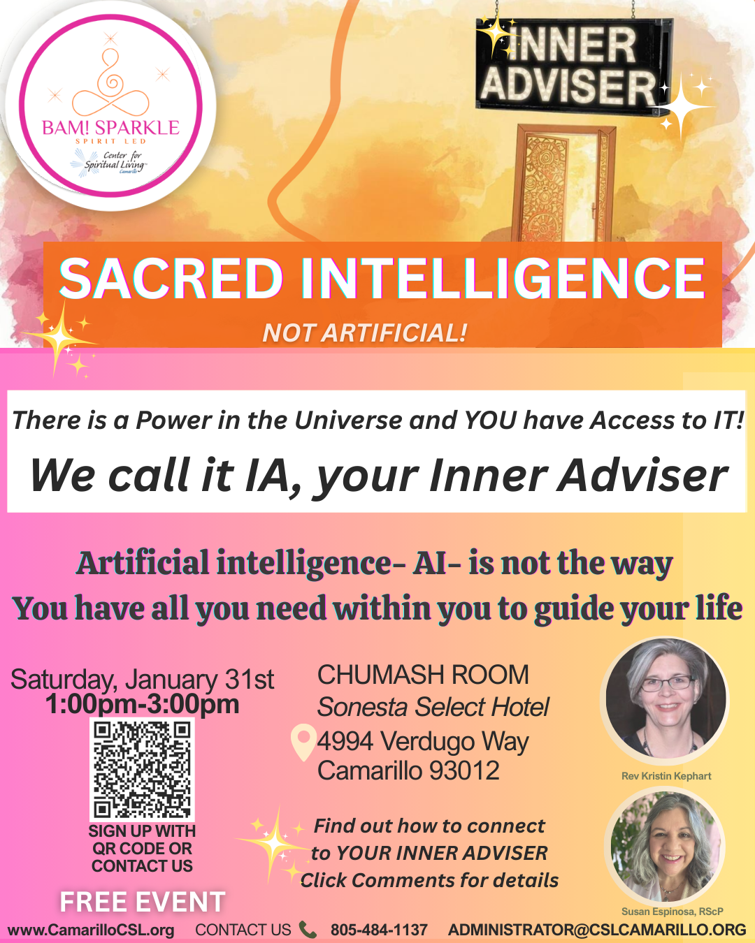 You will practice slowing down enough to hear the subtle cues of your Inner Adviser and learn simple, repeatable techniques to strengthen your connection through a combination of intuition and visualization, journaling and breath work, sacred sound and stillness and time to just be with this sacred presence.